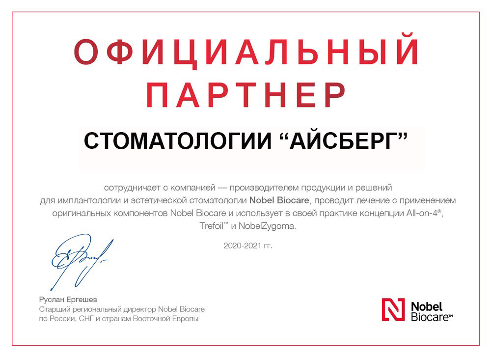 - Пожизненная гарантия на имплантаты от производителя. Сертифицированные партнеры Nobel