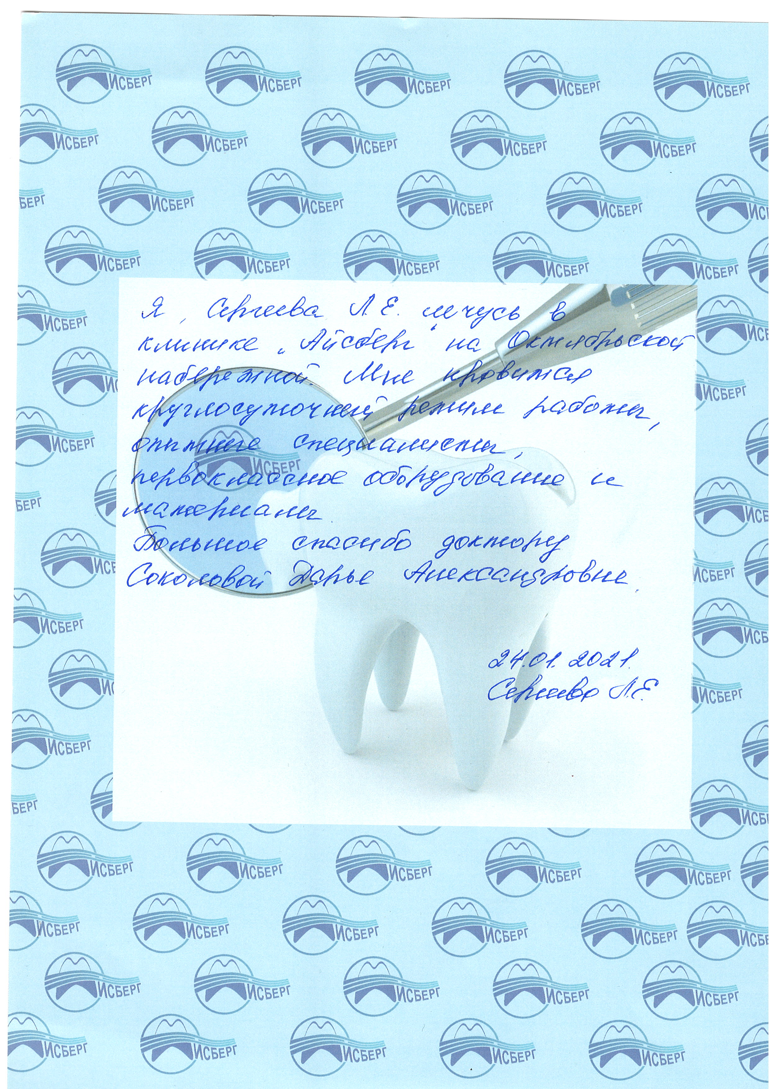 Отзыв врачу Соколовой Дарье Александровне