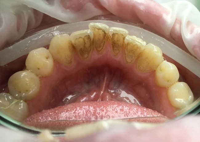 Сначала снимается зубной налет и камни, с использованием химических или механических способов.